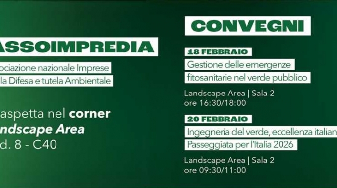 In occasione della fiera Myplant & Garden 2026, in programma il 18, 19 e 20 febbraio 2026, Assoimpredia – associato APGI – promuove due convegni dedicati ai temi della gestione del verde pubblico e dell’ingegneria del verde.