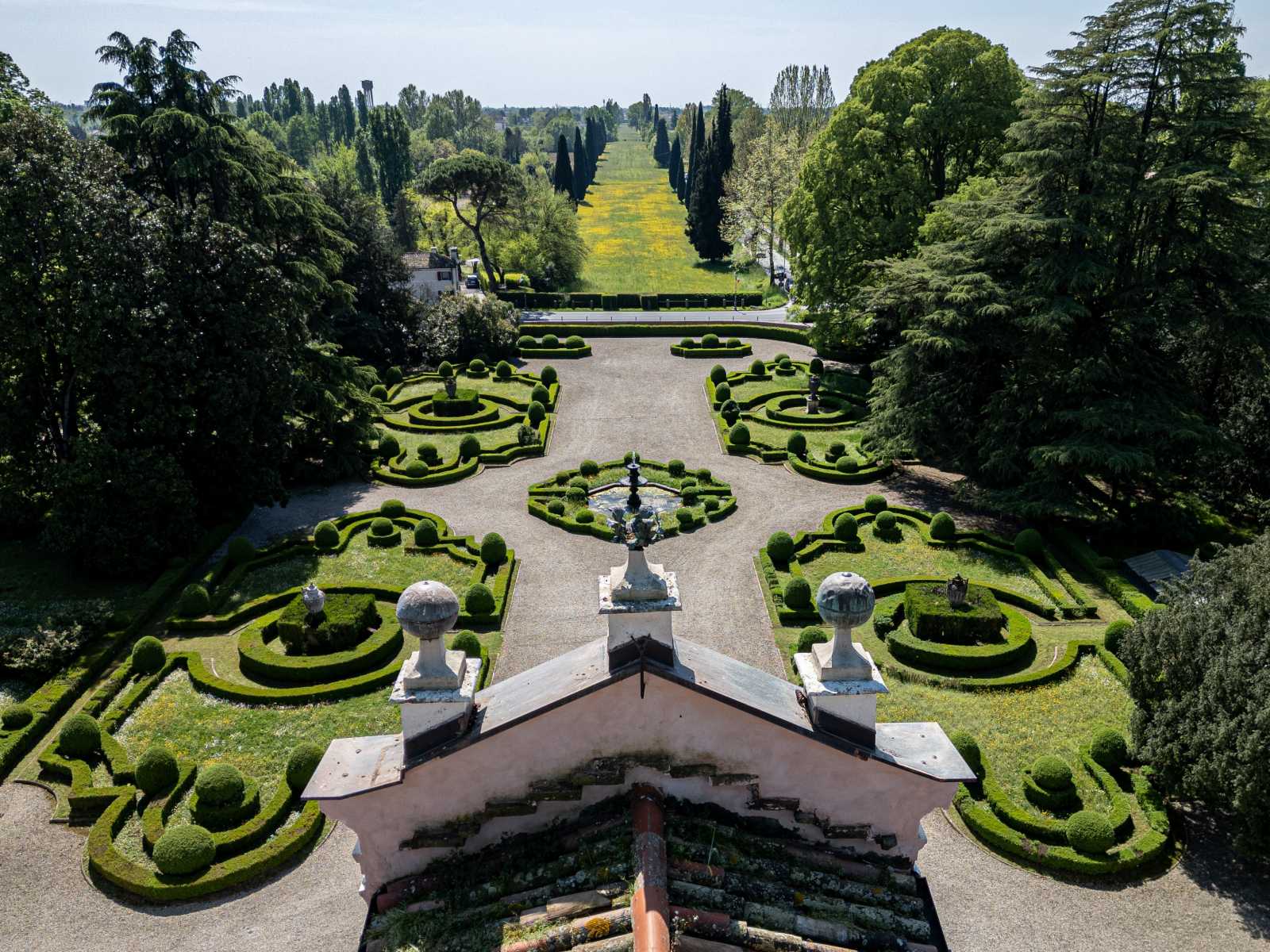 Oltre la peschiera e la strada ora provinciale (antico decumano romano) si estende un imponente viale prospettico di circa 2.5 km (antico cardo romano) che prolungato idealmente raggiunge a sud la città di Venezia e a nord le città di Belluno e Cortina d’Ampezzo, un’asse ben individuato dal profilo delle Dolomiti bellunesi lungo il tracciato della valle del Piave.