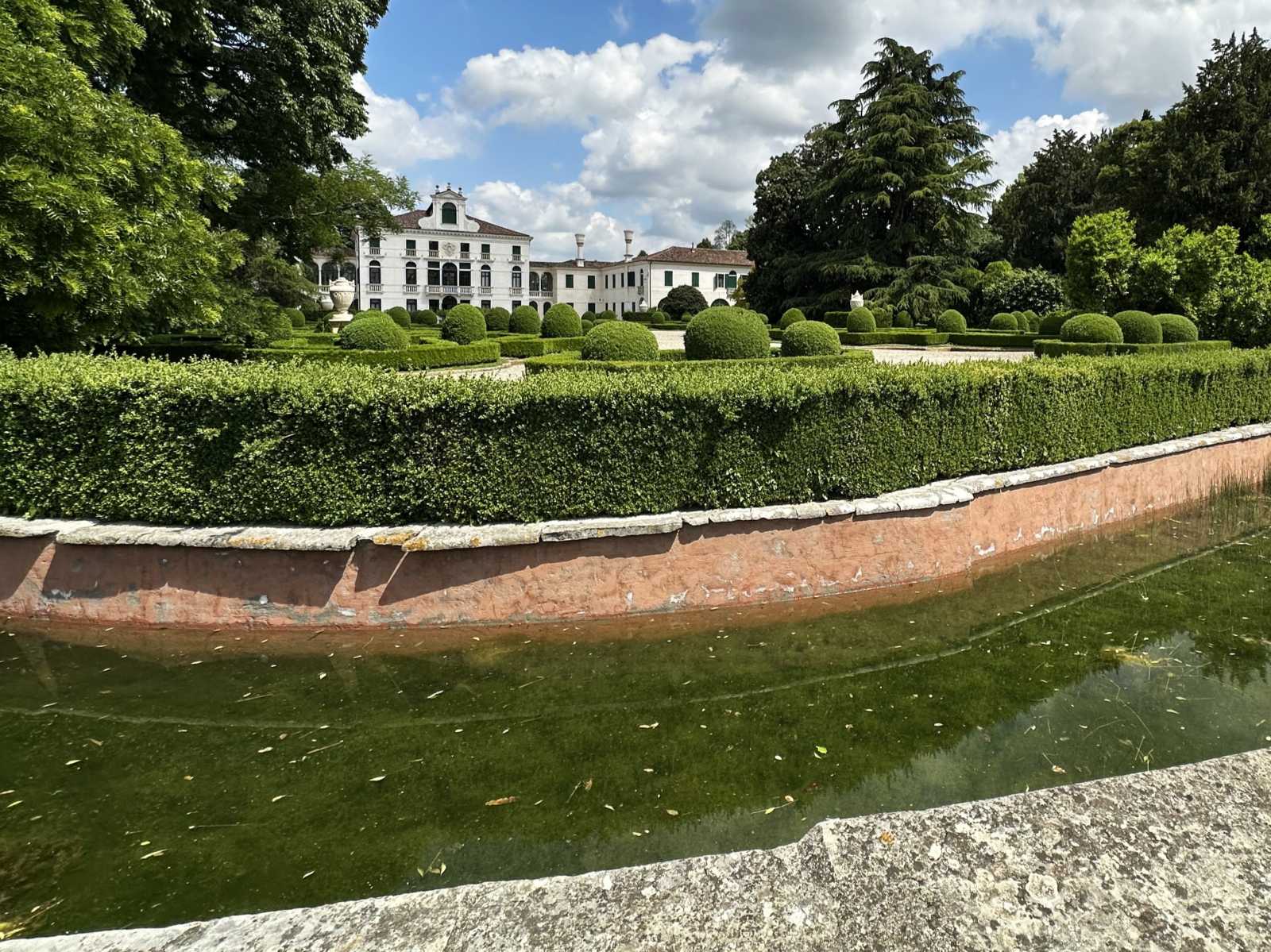 Viale prospettico frontale, tipico delle Ville Venete (cardo romano antico) Brolo di Villa (hortus conclusus) Peschiera tipica delle Ville Venete con pesci, rane, anguille commestibili Cappella gentilizia presente in tutte le Ville Venete (con due ingressi: quello del nobile e quello per il popolo, che pregavano insieme) Ghiacciaia Grotte Montagnole Ruota d'acqua Serre Statue VaseriaNotizie storiche